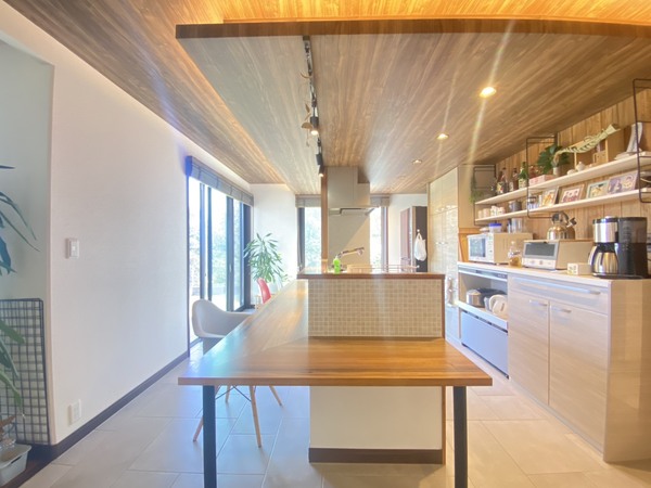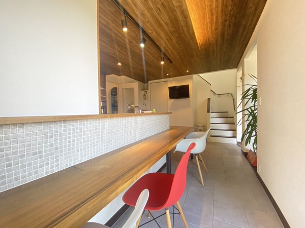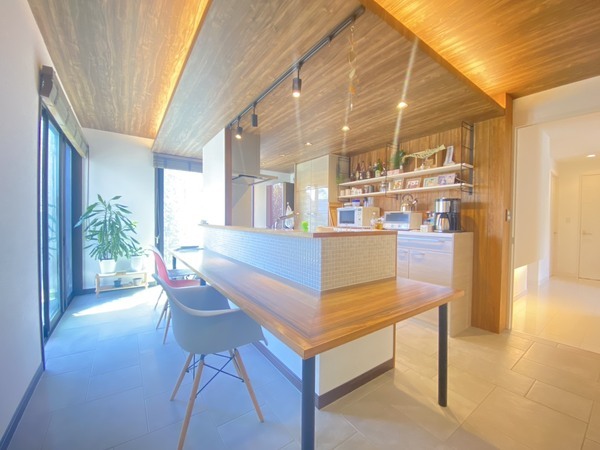 〇ダイニングは(床)タイル調と(カウンター・天井)木目調の洗練されたデザイン