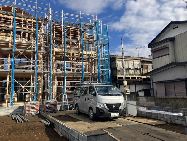 2026年3月完成予定の新築戸建。3階建、WIC+LD収納、延面積96.05m2。