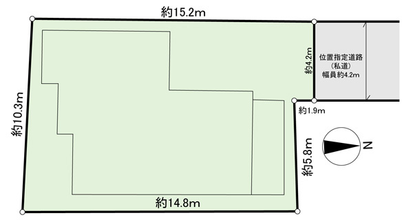 | 接道方向 | 一方、私道 方向:北 幅員:4.2m |