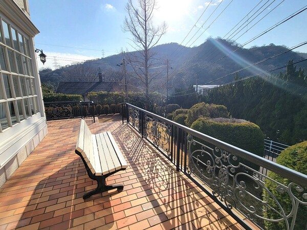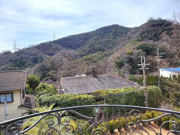 ■2階からは眺望良好です。近くには六甲山系の山並みの緑が眺められ、遠くは大阪市街地の街並みを眺めることができます。