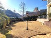 ■南向きから西向きにかけてのタイル敷が設けられ、ベンチも設置されています。
