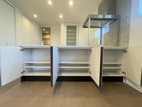 約1.5帖のパントリー、浅型収納も設置されており充実の収納力