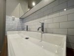 ◎約3.5帖の洗面室には2人同時に使用可能な1ボウルに2つの水栓が採用されており朝の時間を短縮