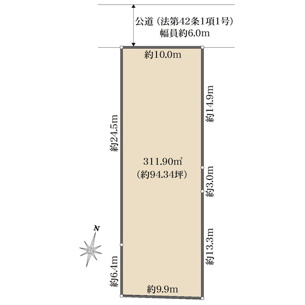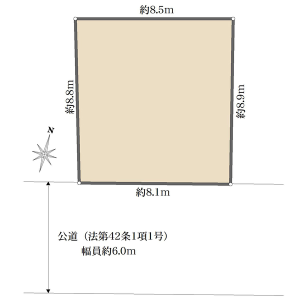 | 接道方向 | 一方、公道 方向:南東 幅員:6.3m |