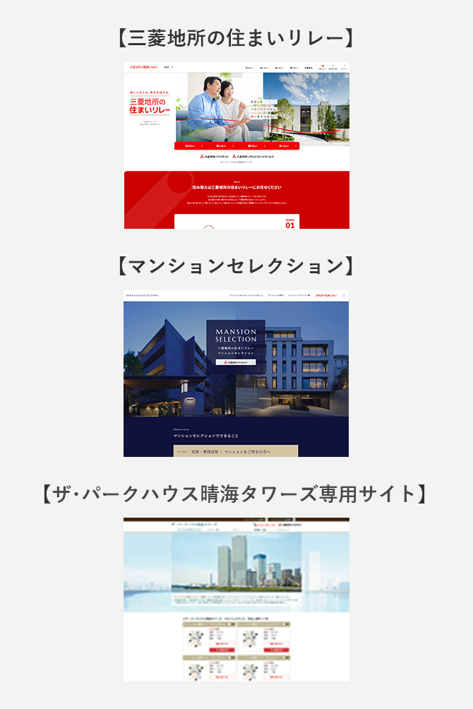 三菱地所グループがお届けする、住まいの売買仲介・賃貸情報サイト「三菱地所の住まいリレー」では、買いたい方に向けた専用コーナーおよび、「ザ・パークハウス晴海タワーズ」の魅力をアピールする専用サイトを設けており、広く情報を発信しています。