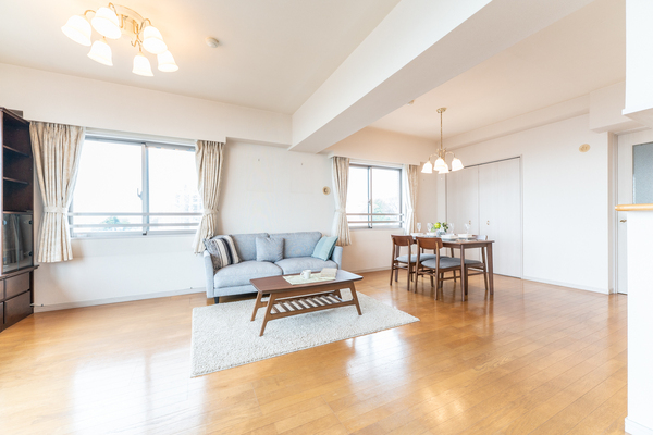 南西角住戸・全居室2面採光 前面に遮蔽物がなく陽当たり・通風良好