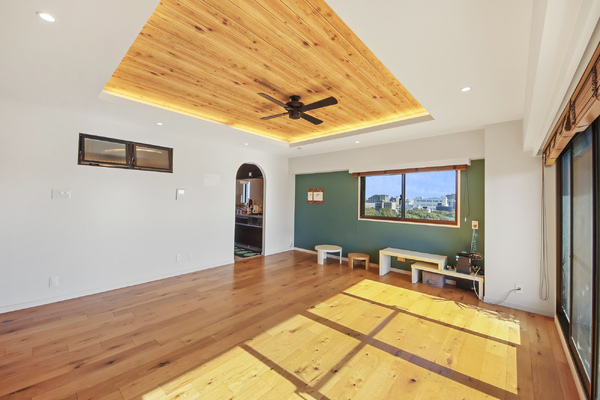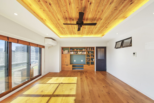 ・リビング、ファミリークローゼット窓にウッドブラインド付