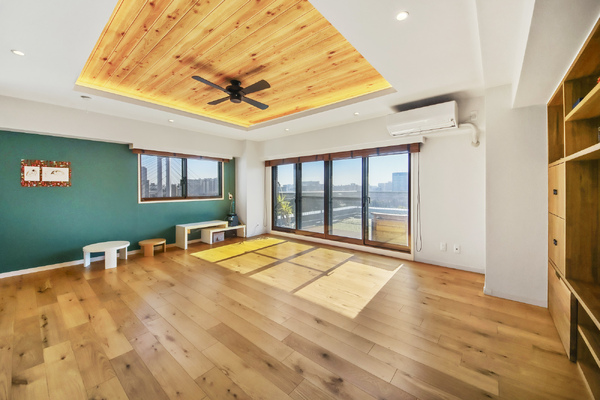 木場公園を東南2面で臨む大型ルーフバルコニー付マンション