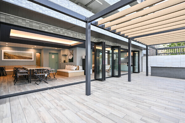 ■リビングに約5帖の洋室が隣接。ウォールドアで繋がり、一体利用で広々とした空間。