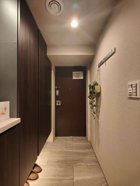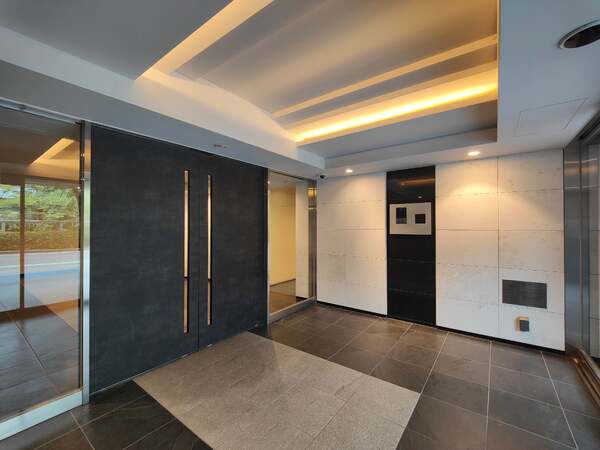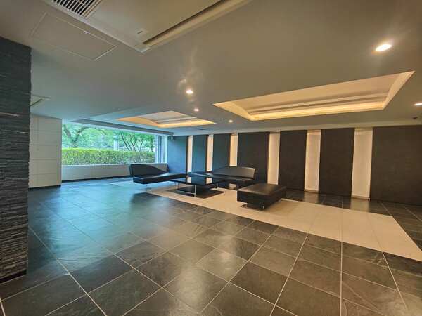 外観はモダンな印象で、エントランスは都市と自然の調和を感じさせる造りとなっています。