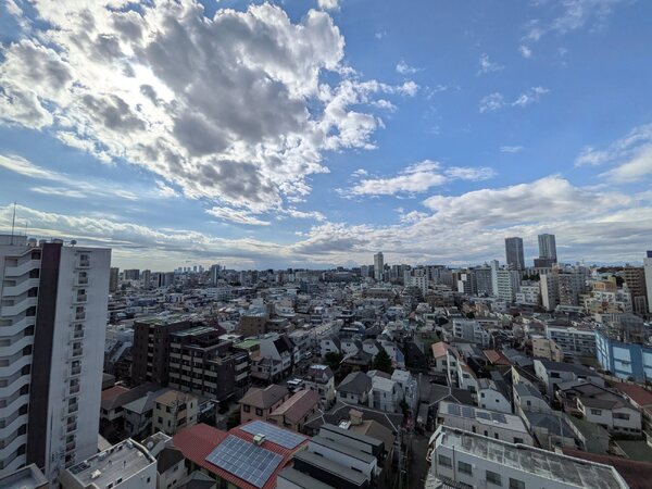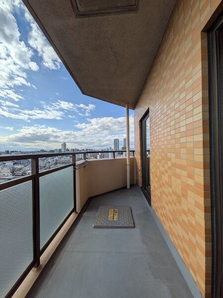 お部屋は13階部分・南向き角住戸であり、陽当たり・眺望・通風良好です。