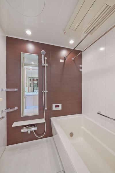 ・充実の室内設備:床暖房、ミストサウナ付浴室換気乾燥機、食器洗浄機、人感センサー付照明、カラーモニター付インターホン等