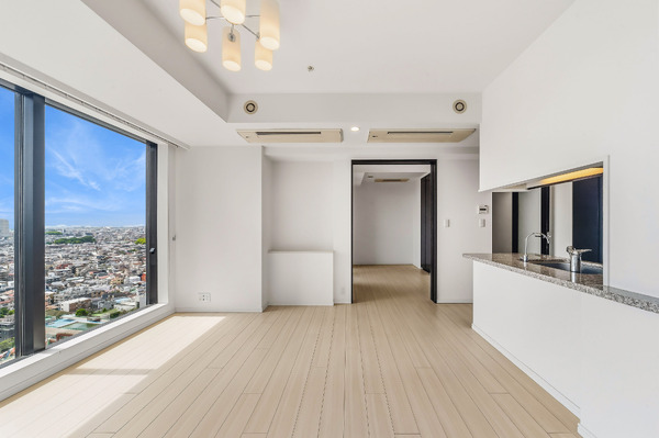 南面開口部に全居室を配した明るく開放的な21階部分南東角住戸、LDより大井町・戸越エリアが一望