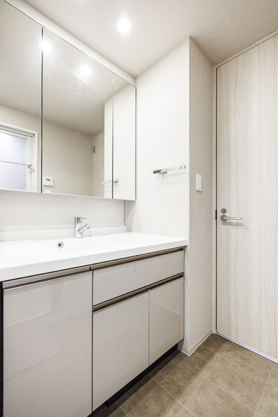 ◆吊戸棚やリネン庫など収納豊富な洗面室