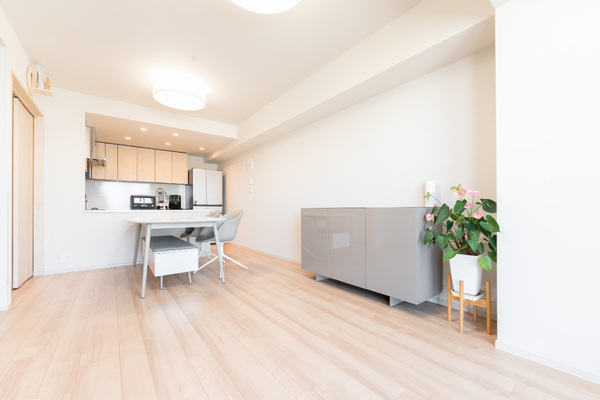 9.69mの陽が入りやすいワイドスパン住戸。随所に収納ございます。LDだけでなくキッチンにも床暖房有
