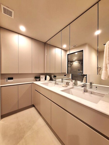 ■ダブルボウルで収納豊富な洗面化粧台