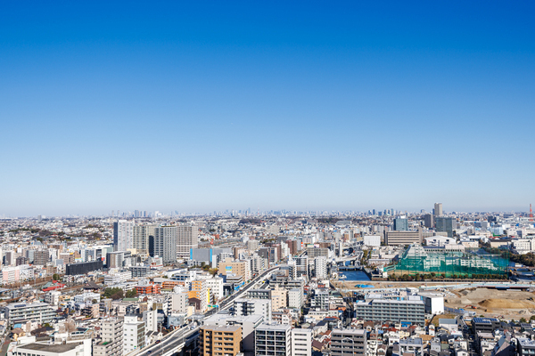 三菱地所他分譲。全居室がバルコニーに面し、採光・通風良好。東京スカイツリーが望めます(天候による)。