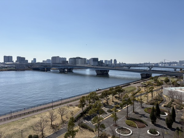 バルコニーより晴海運河レインボーブリッジを望む(天候による)