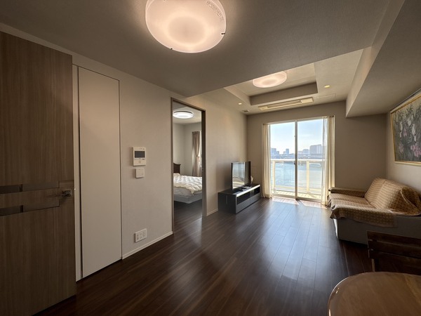 南向きにつき・晴海運河やレインボ―ブリッジを望む眺望。(天候による)各居室バルコニーに面したお部屋。