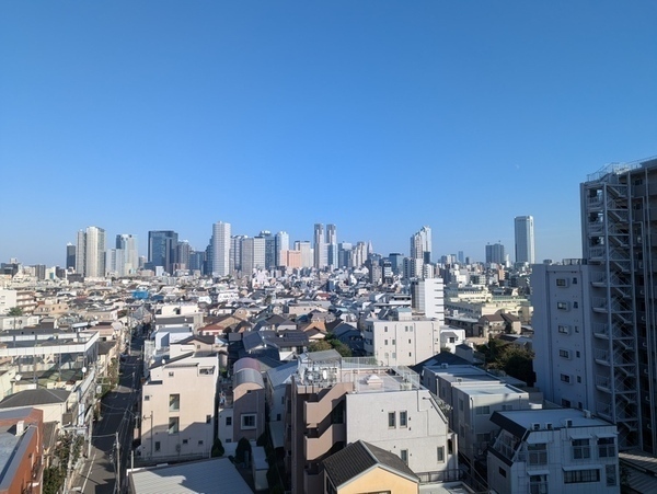 新宿や都庁方面を望む、眺望良好で開放的なリビングです。