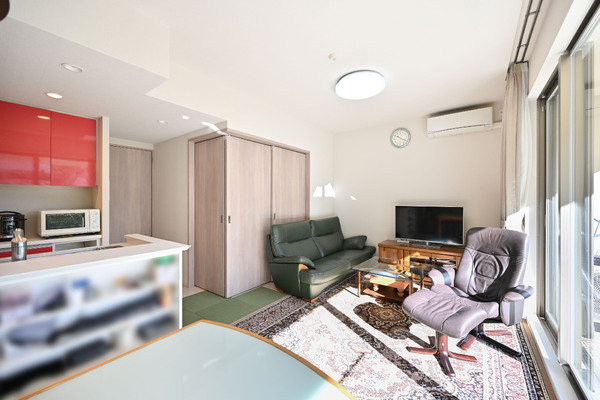 ・リビング:カウンター下収納新設、壁一面収納新設