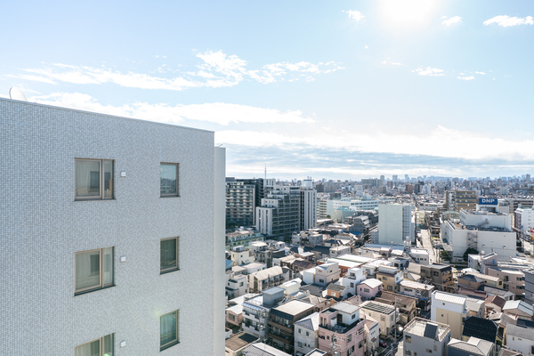 ■最上階15階部分・東向きバルコニーからの眺望は、開放的で東京スカイツリーを望む(天候による)