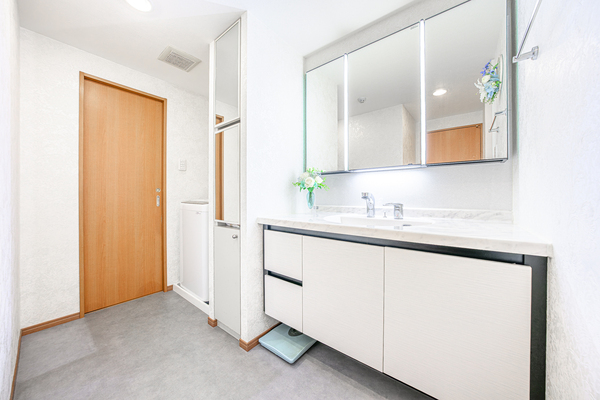 洗面室は2WAY動線(キッチンと廊下の両方から出入り可能)で家事効率アップ