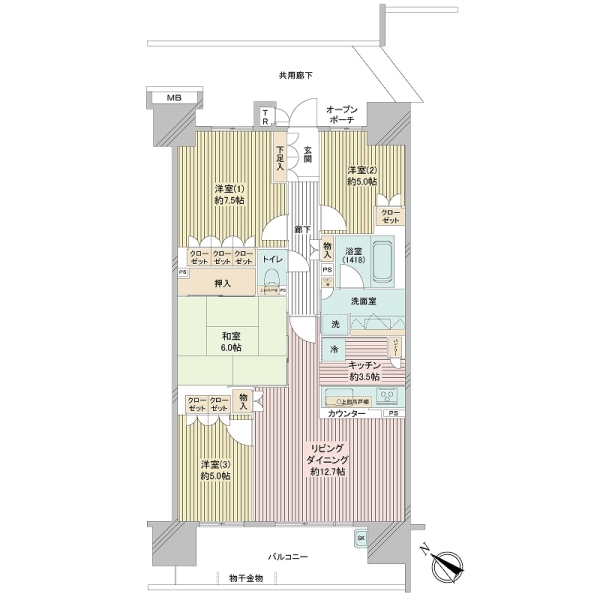 専有面積:88.91m²(26.89坪)