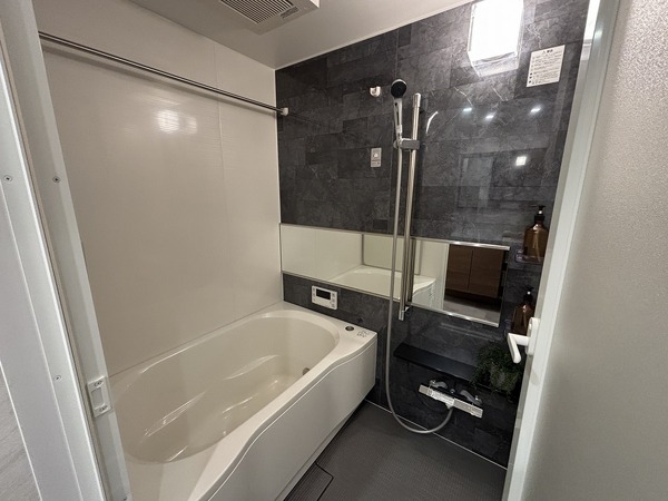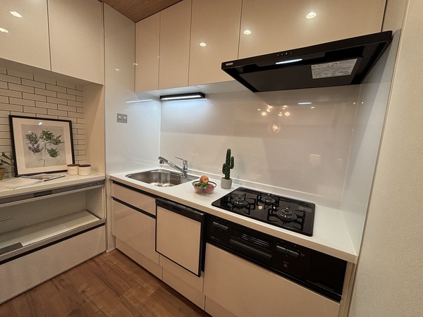 家電収納付カップボード、浴室乾燥機付ユニットバス、シャワー付洗面化粧台、