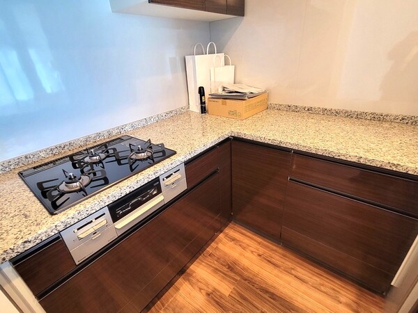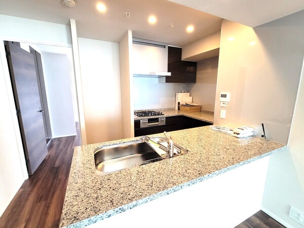 ■コの字型キッチンで使いやすいキッチンです。カウンタートップは高級感あふれる天然石が使用されています