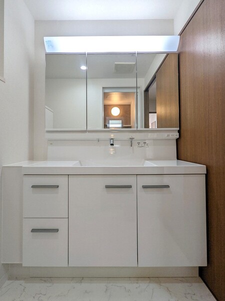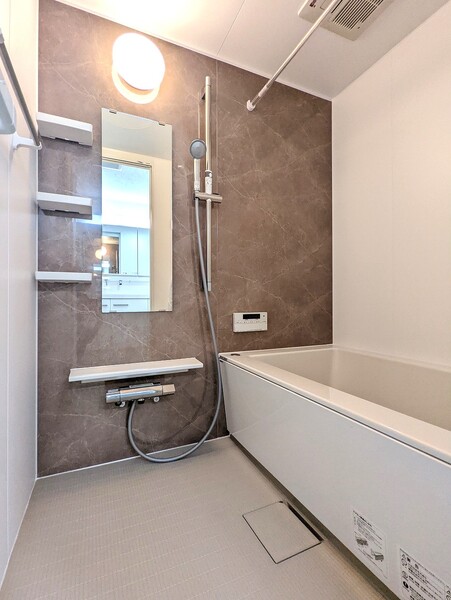 ・W=1200のワイド洗面台、保温断熱浴槽、浴室乾燥機、モニター付インターホン等の快適な暮らしを支える設備有
