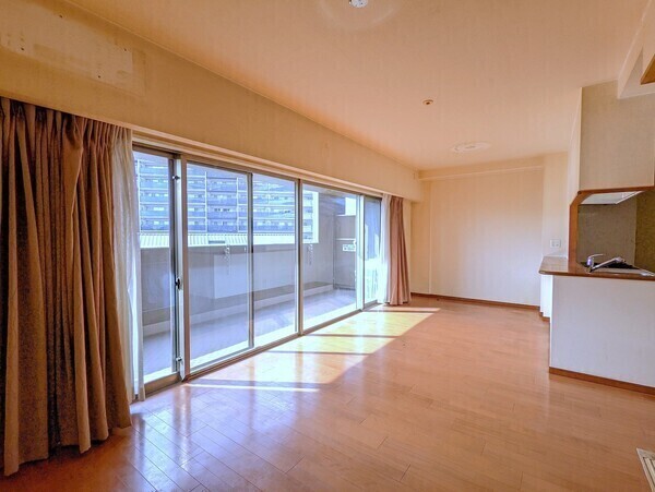 ■南西向きLDK約16.6帖に面したバルコニーは開口部分が約7mのワイド幅のため、陽光・通風良好です。