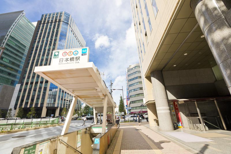 日本橋駅は東京メトロ銀座線、東西線、都営浅草線の3路線が乗り入れる交通結節点です。主要駅へのアクセスは、東京駅まで約9分、品川駅まで約13分です。駅周辺にはコレド日本橋や日本橋高島屋などの商業施設があり、成城石井やトモズ、ウエルシア薬局などの買い物施設も充実しています。1932年に江戸橋駅として開業し、1967年の東西線開業により乗換駅としての役割を担っています。